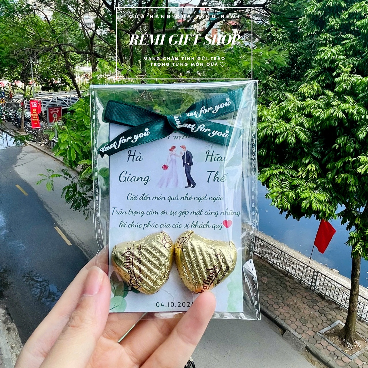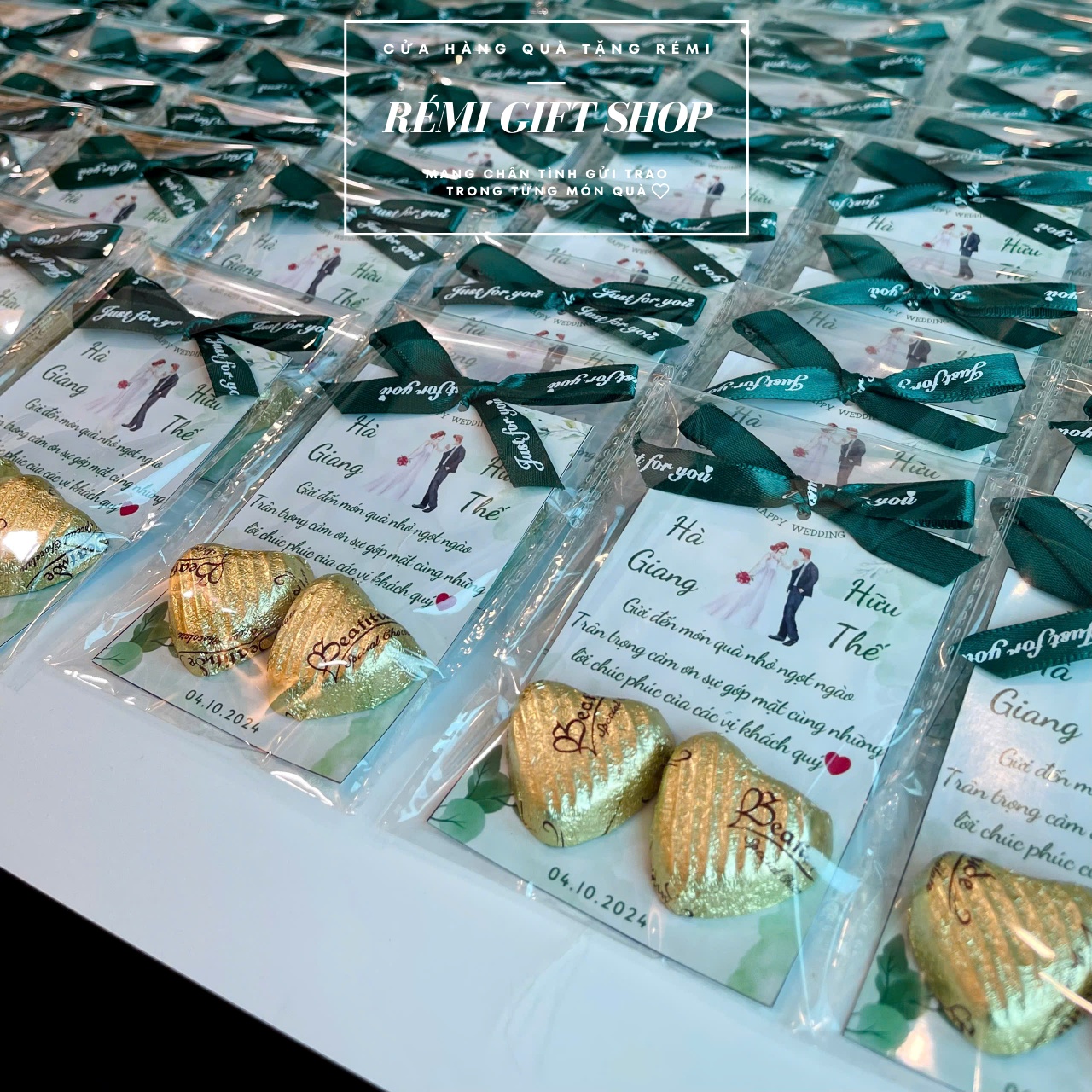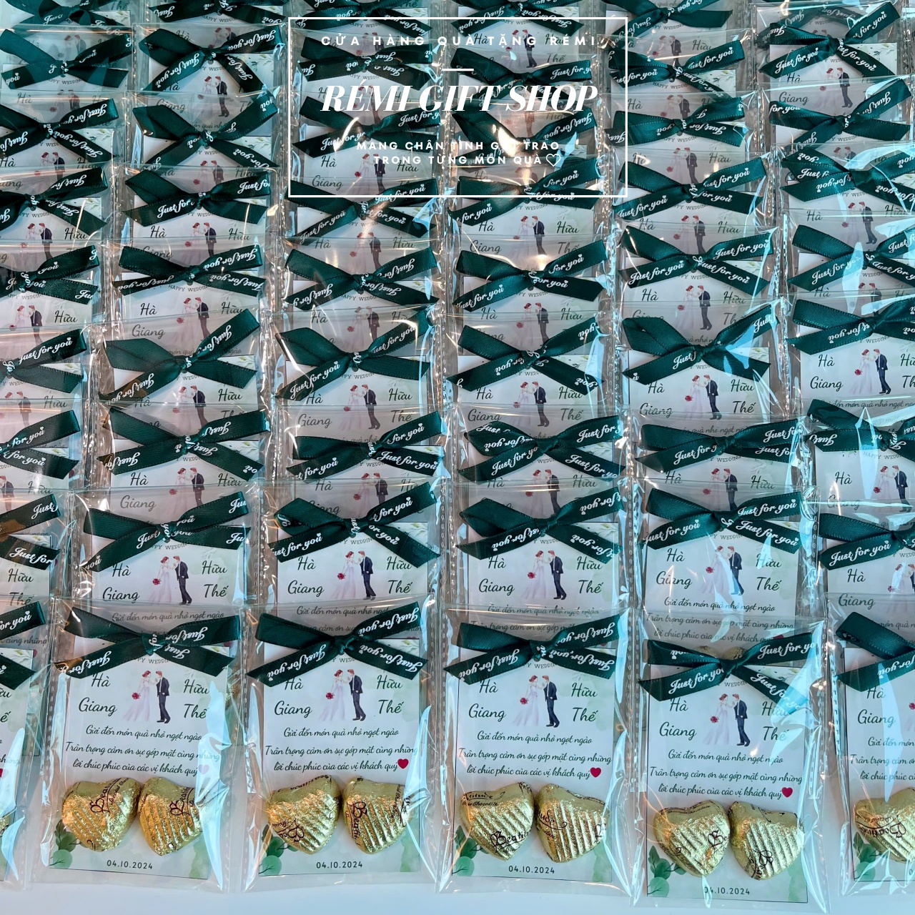 200 set thiệp kẹo 2 sô cô la thắt nơ tone xanh xinh xắn làm quà tặng cho những vị khách quý trong ngày lễ trọng đại. Chúc hai bạn trăm năm hạnh phúc, cùng nhau hướng về những điều tốt đẹp nhất. Happy Wedding!
