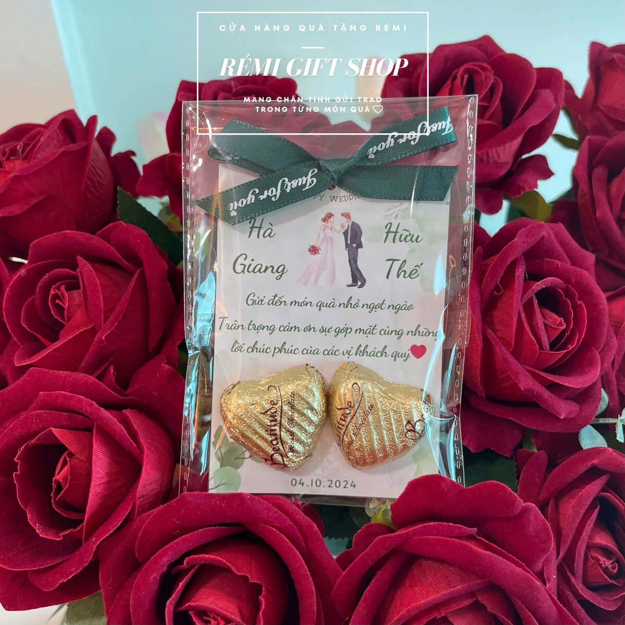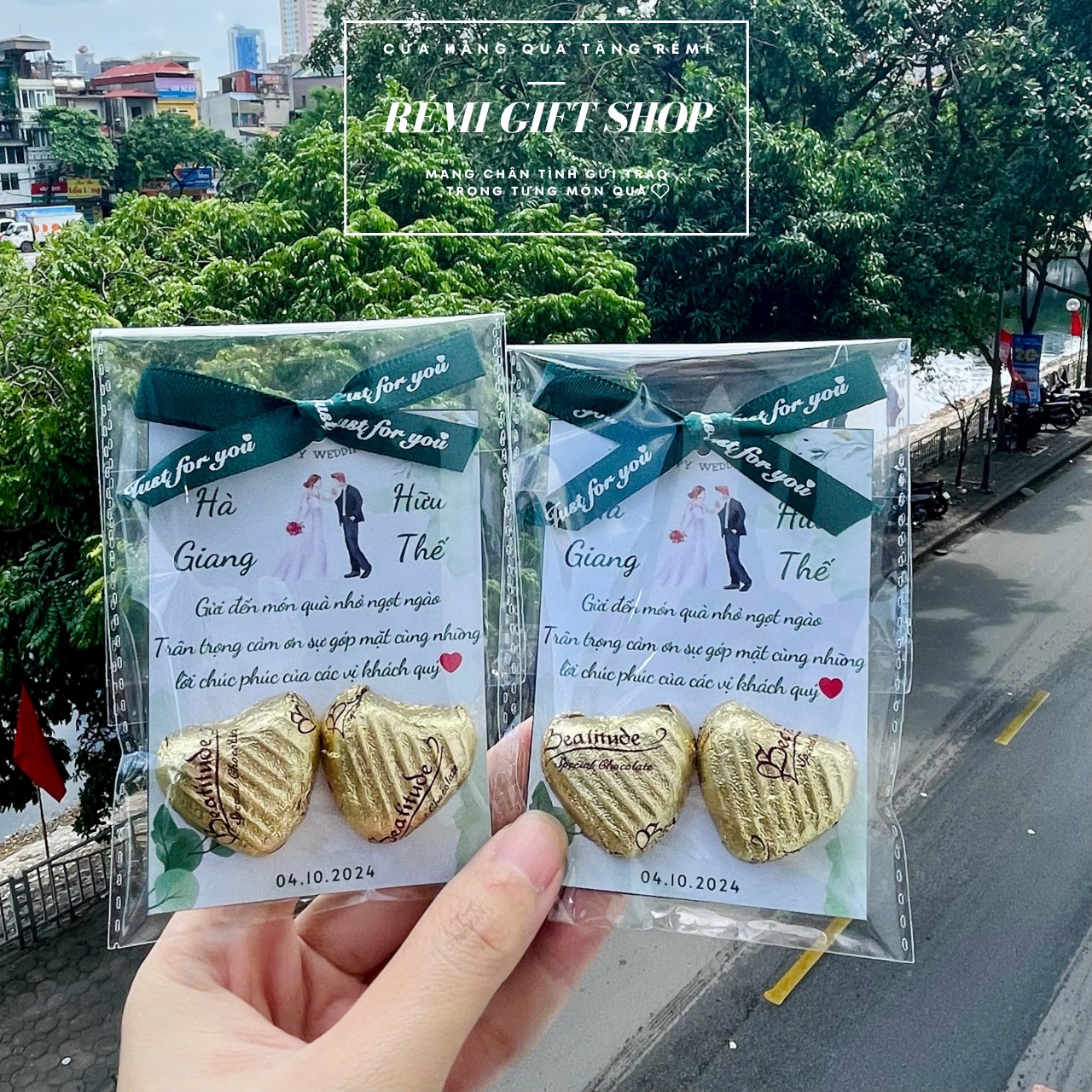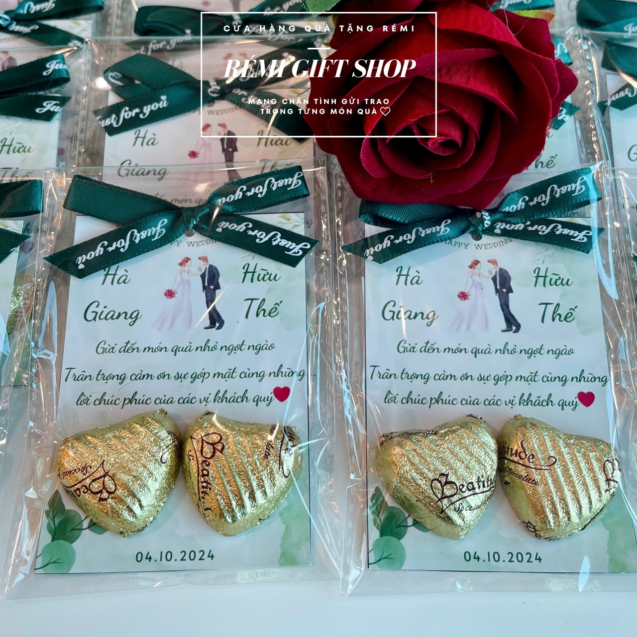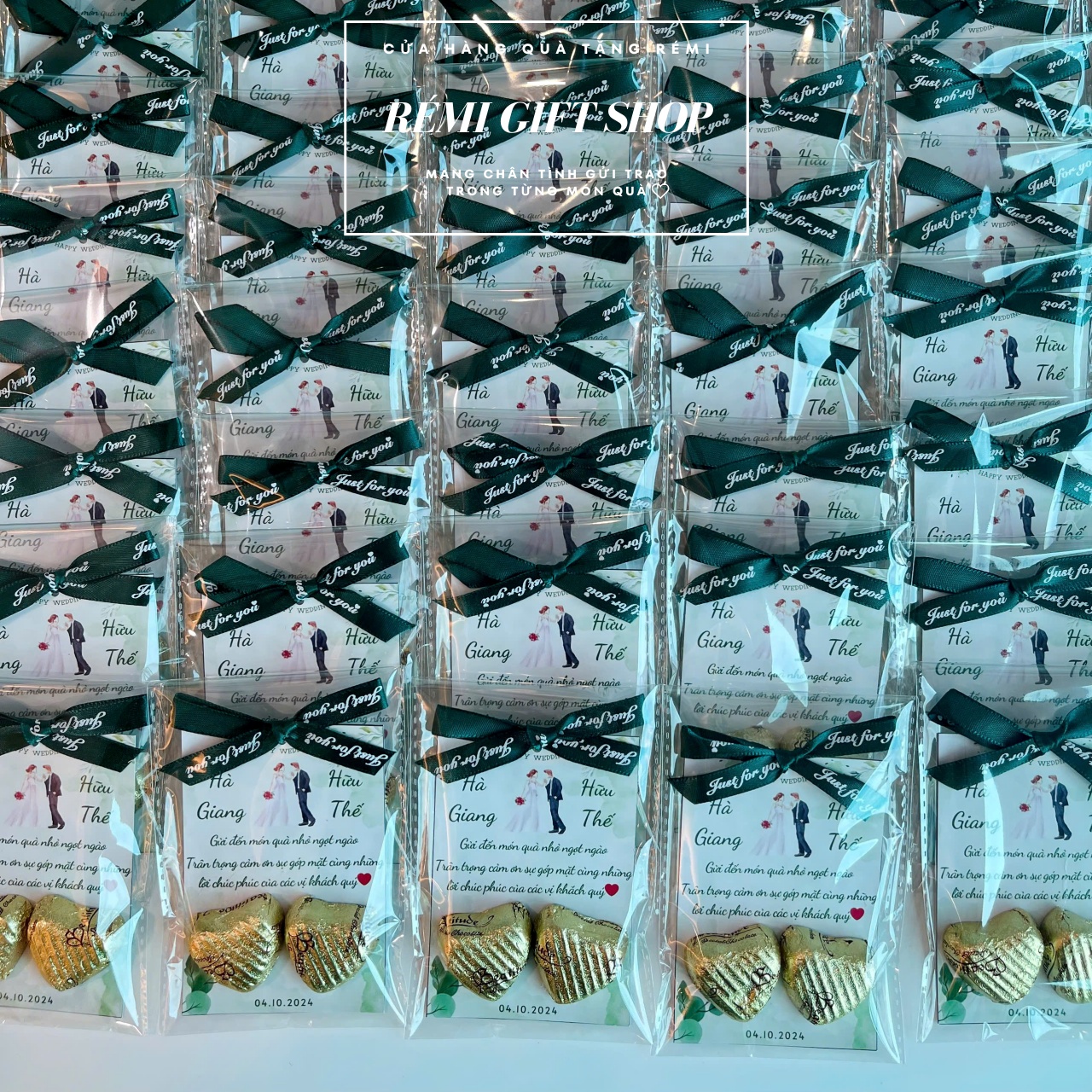 200 set thiệp kẹo 2 sô cô la thắt nơ tone xanh xinh xắn làm quà tặng cho những vị khách quý trong ngày lễ trọng đại. Chúc hai bạn trăm năm hạnh phúc, cùng nhau hướng về những điều tốt đẹp nhất. Happy Wedding!