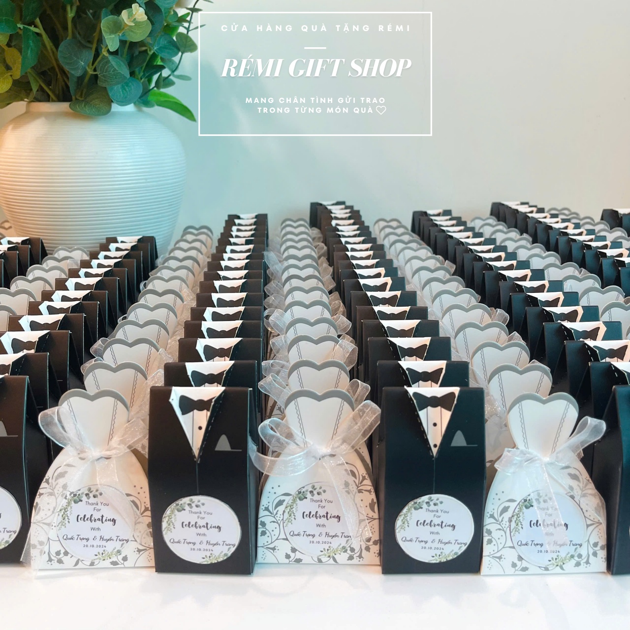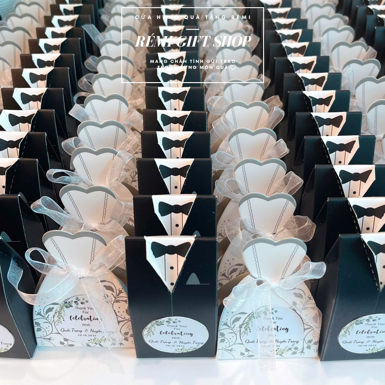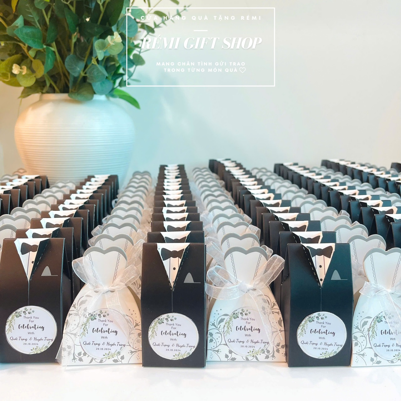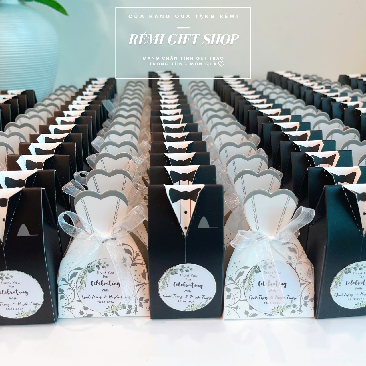 600 hộp quà kẹo sô cô la hình cô dâu chú rể là món quà đầy ý nghĩa và ngọt ngào mà cô dâu Huyền Trang và chú rể Quốc Trọng lựa chọn làm món quà gửi đến những vị khách quan trọng thay cho lời cảm ơn chân thành nhất. Chúc hai bạn thật nhiều hạnh phúc!