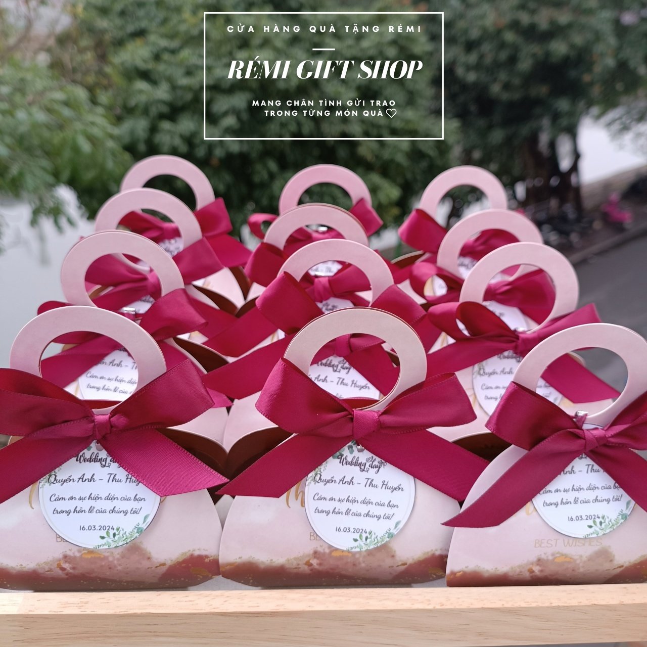 + Sét quà tặng gồm: Hộp quà quai xách + 2 viên socola trái tim