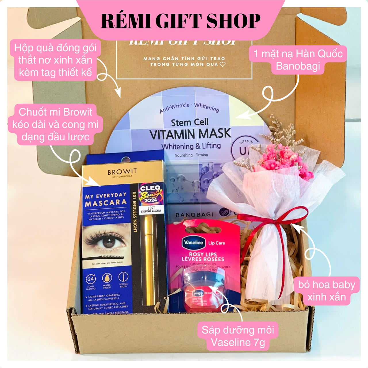 Rémi gift shop nhận gia công hoàn thiện sét quà và đặt hàng số lượng lớn, quý khách có nhu cầu liên hệ trực tiếp hotline shop