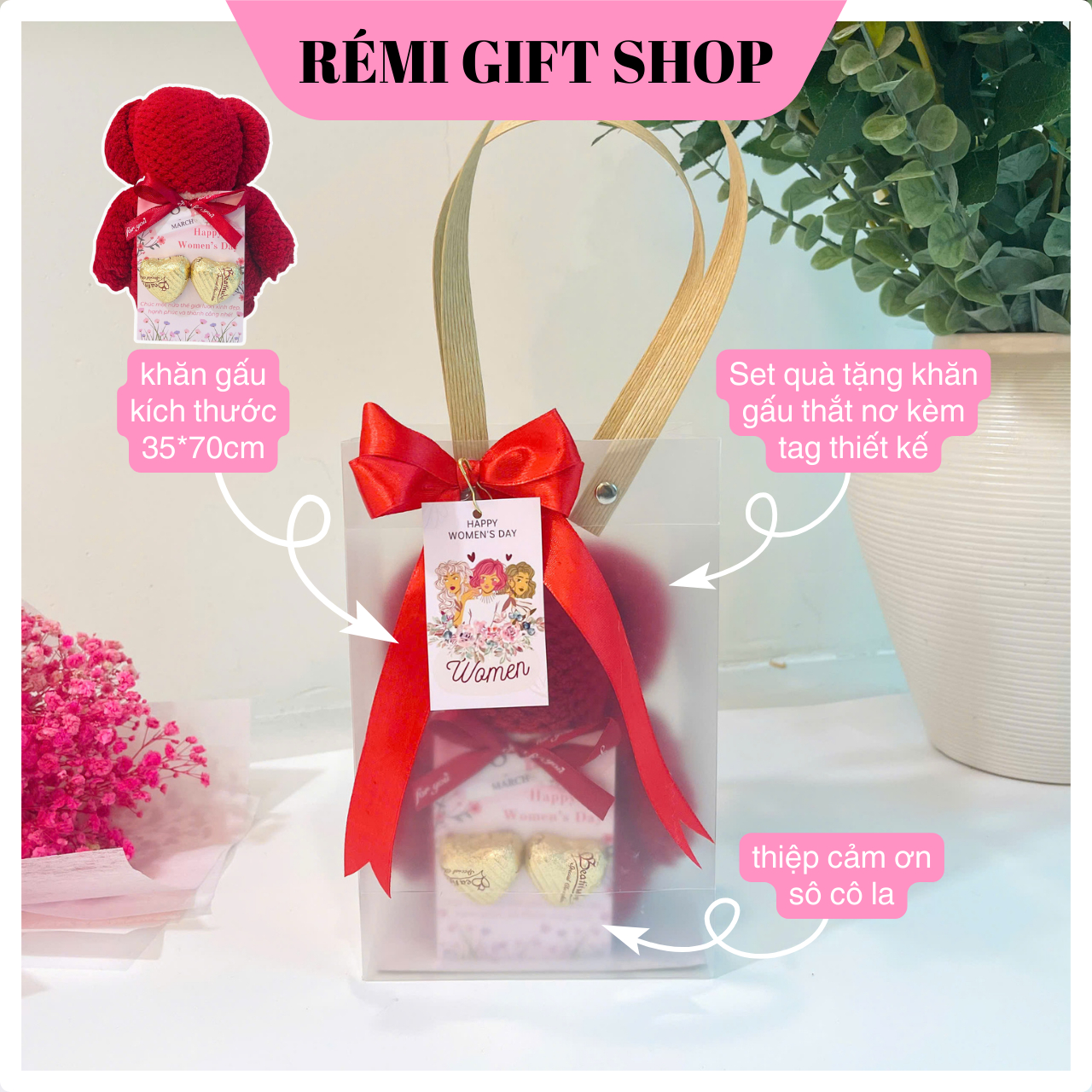 M2-Túi quà tặng khăn gấu kèm thiệp kẹo sô cô la mừng ngày Quốc tế phụ nữ 8/3, Phụ nữ Việt Nam 20/10