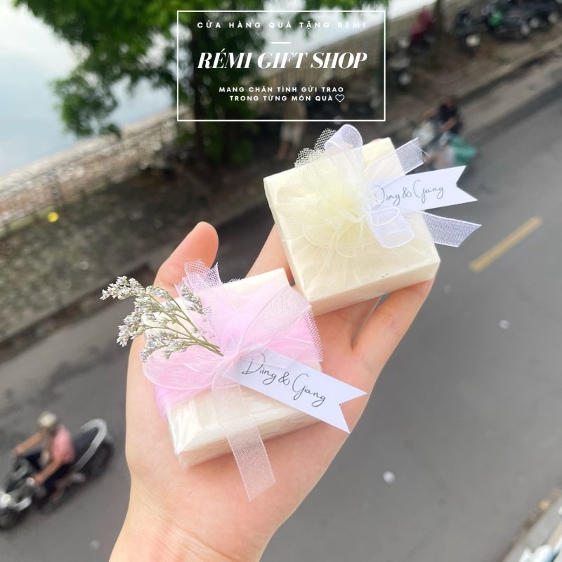 Nếu bạn đang muốn mua xà phòng cưới ở TPHCM, RémiGift có sẵn nhiều mẫu: từ phong cách vintage, tối giản đến kiểu Hàn Quốc lãng mạn.