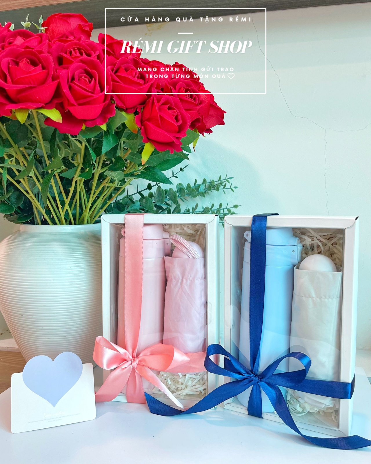 Sét hộp quà tặng bình nước giữ nhiệt, ô cầm tay – quà tặng lễ, tết, sinh nhật, 20/10, 20/11