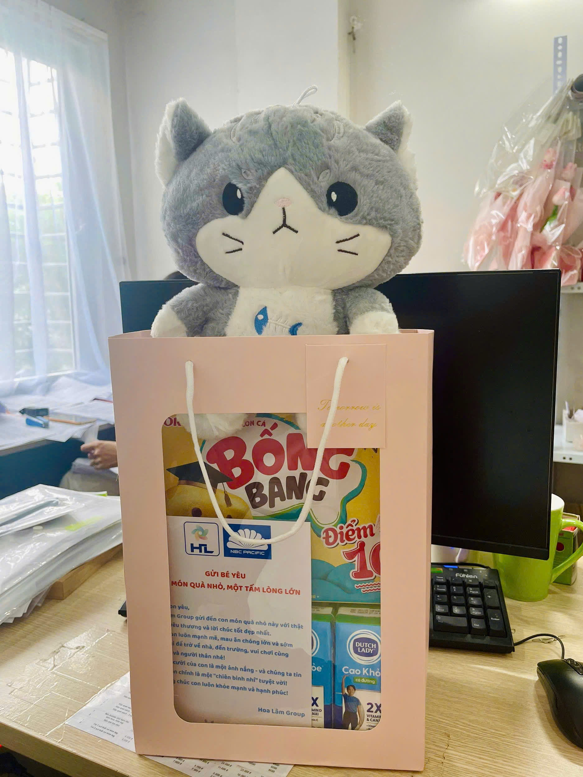 Set quà tặng bánh sữa và gấu bông cho bé